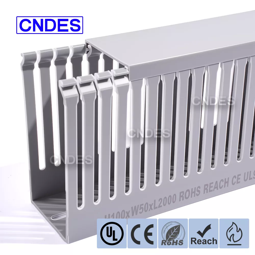 CNDES:n räätälöity 100 × 50 PVC Cable Trunking on käytännöllinen ja tehokas kaapelinhallintaratkaisu. Kehitimme tämän kokoisen kaapelihyllyn tasapainottamaan kapasiteettia, joustavuutta ja kustannustehokkuutta, joten se on yksi yleisimmin käytetyistä malleista jakelupaneeleissa, liikerakennuksissa ja teollisuuslaitoksissa.