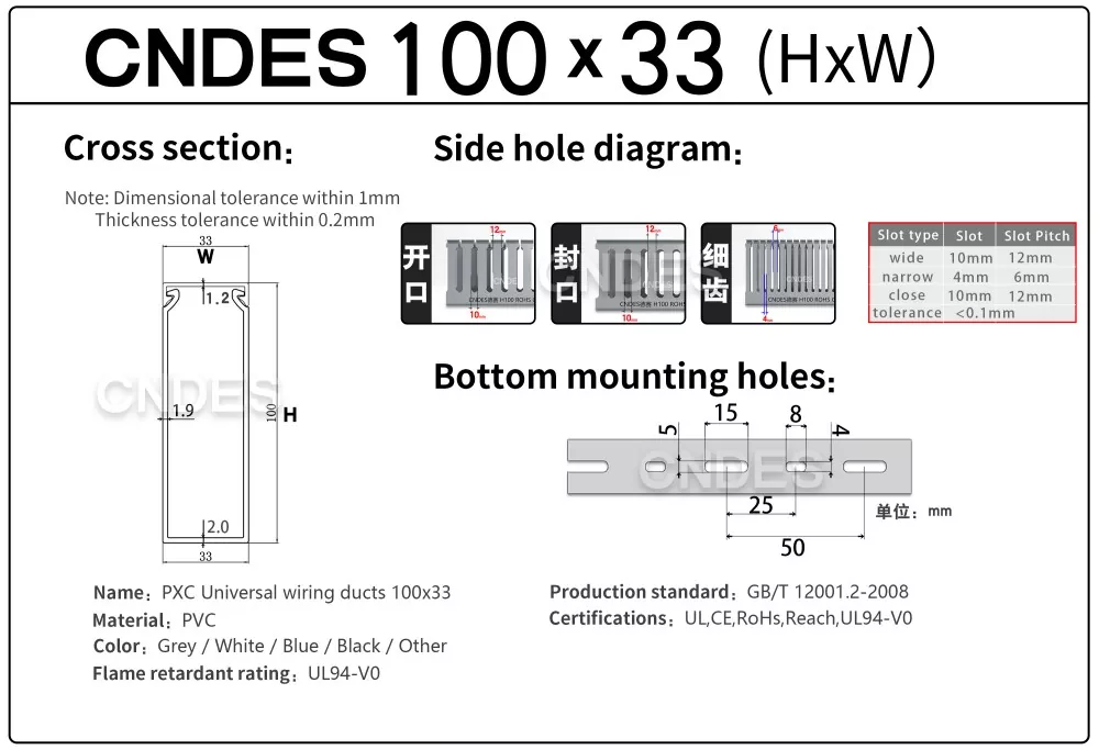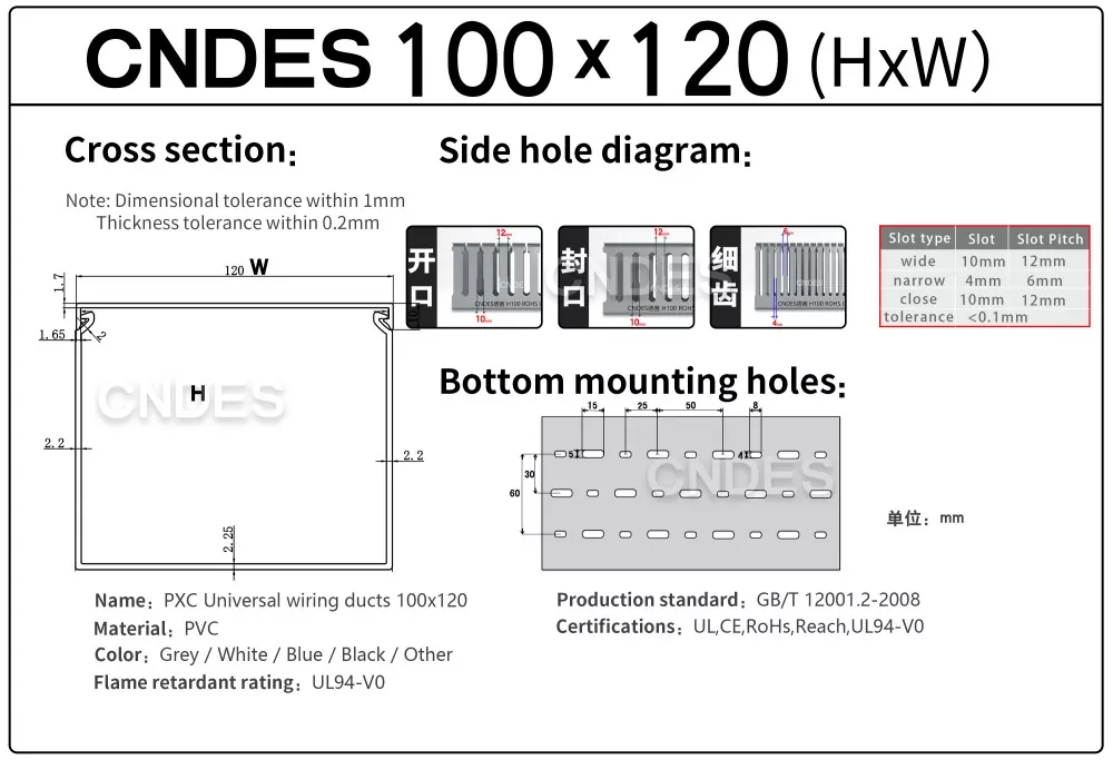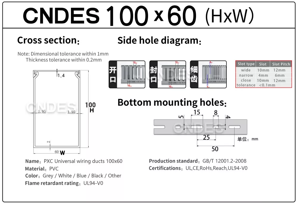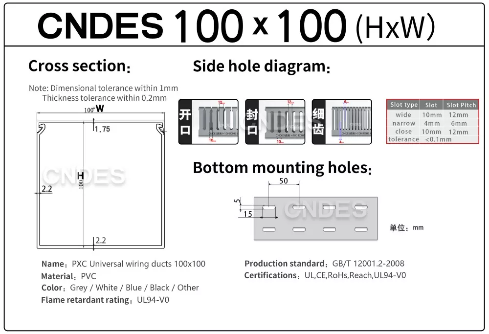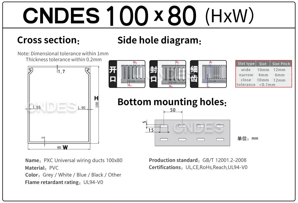 CNDES on ammattimainen kaapelihyllyjen valmistaja, jolla on 24 vuoden kokemus ja joka on erikoistunut räätälöityjen 100 mm korkeiden avoimien rakojen PVC-koteloiden johdotuskanavien tuotantoon. Täällä esittelemme 100 mm korkean kaapelihyllysarjan tuotteemme.