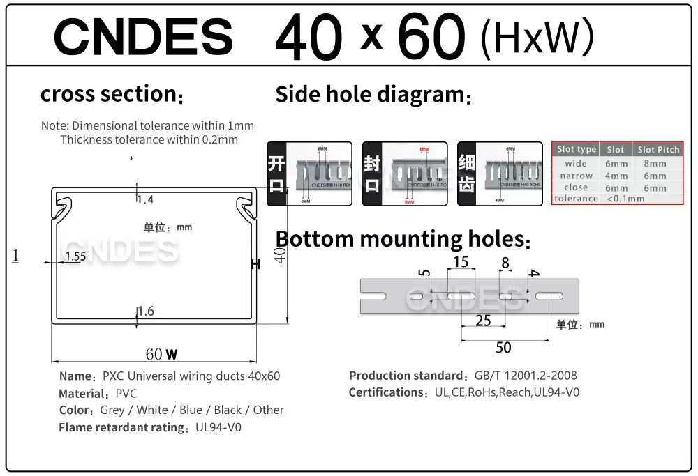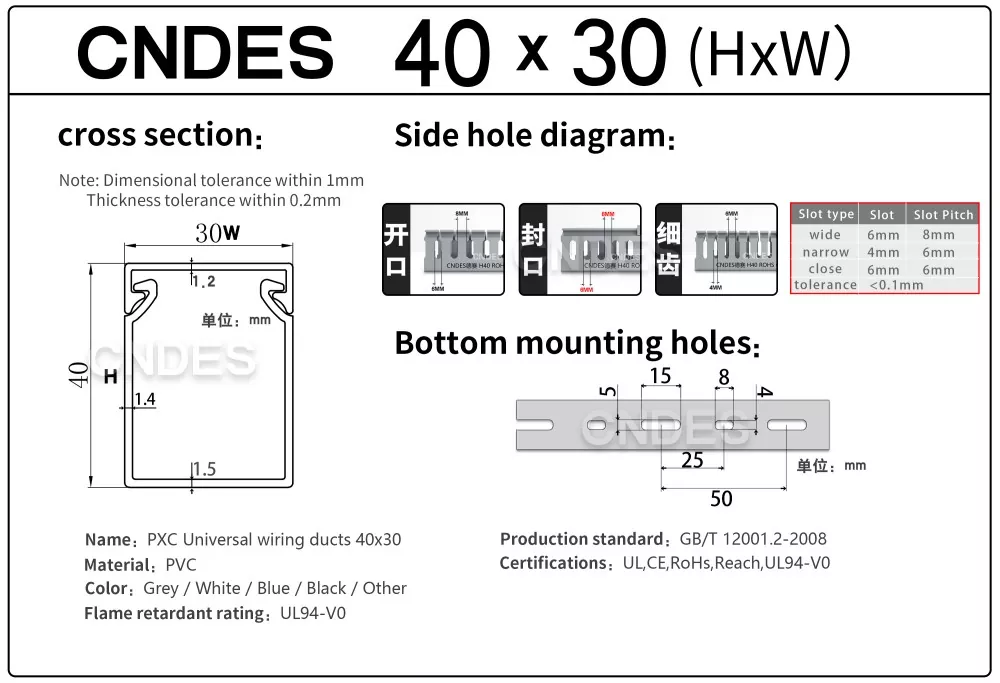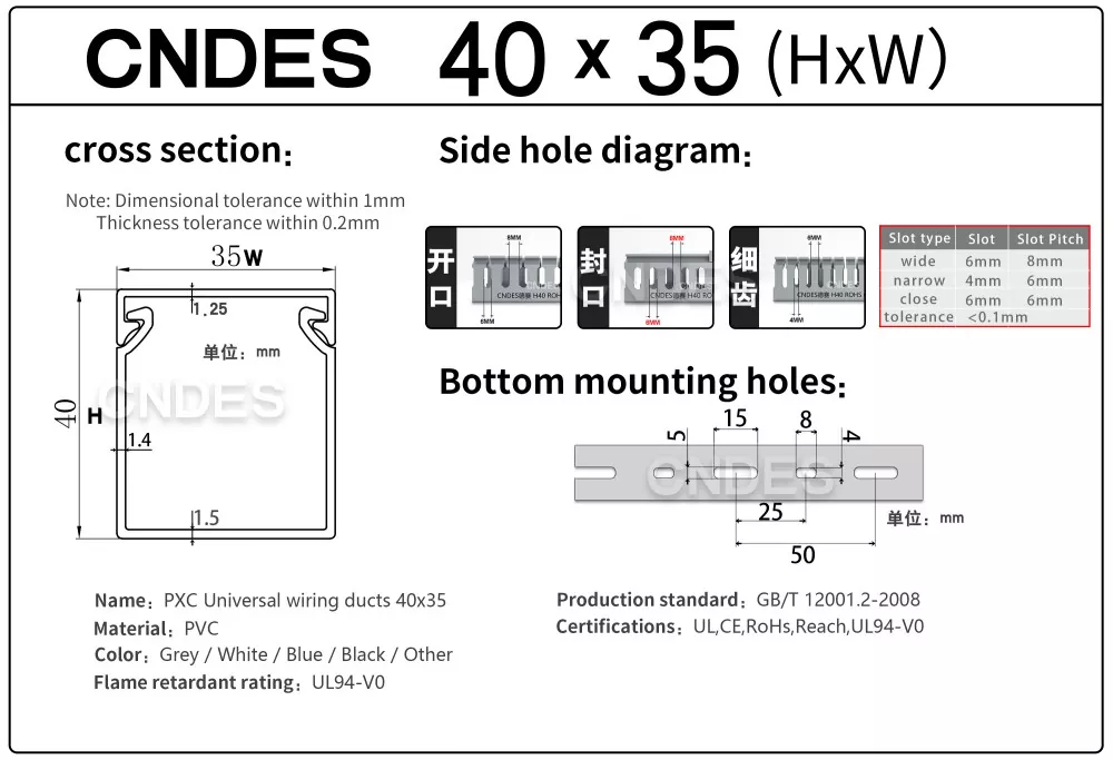 Jos etsit luotettavaa ja suorituskykyistä 40 mm:n korkeutta uritettua PVC-johdotuskanavaa seuraavaan projektiisi, CNDES on täällä auttamassa. Tarjoamme räätälöinnin, nopean toimituksen ja suoran tehtaan hinnoittelun, mikä helpottaa juuri tarvitsemasi tuotteen saamista.