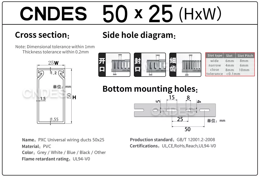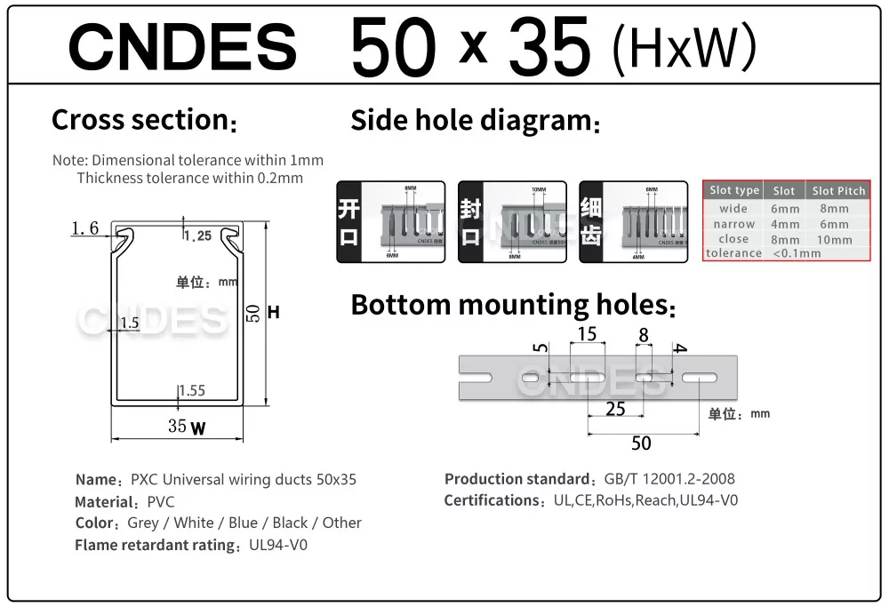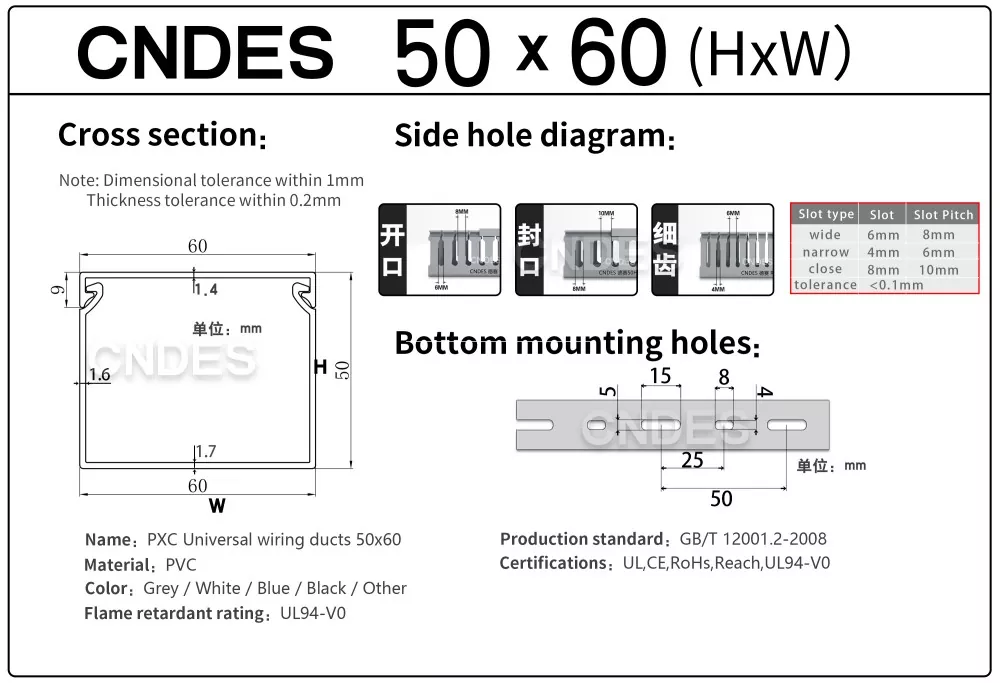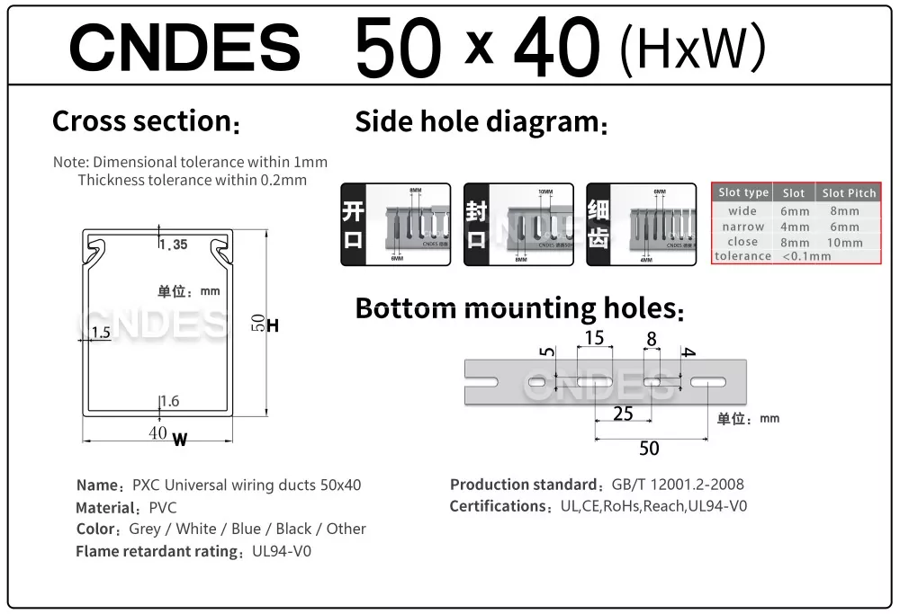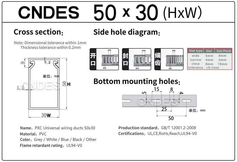 Etsitkö luotettavaa 50 mm:n korkeudella varustettua PVC-paneelijohdotuskanavan toimittajaa? CNDES tarjoaa korkealaatuisia ja edullisia kaapelinhallintaratkaisuja, jotka täyttävät kansainväliset standardit.