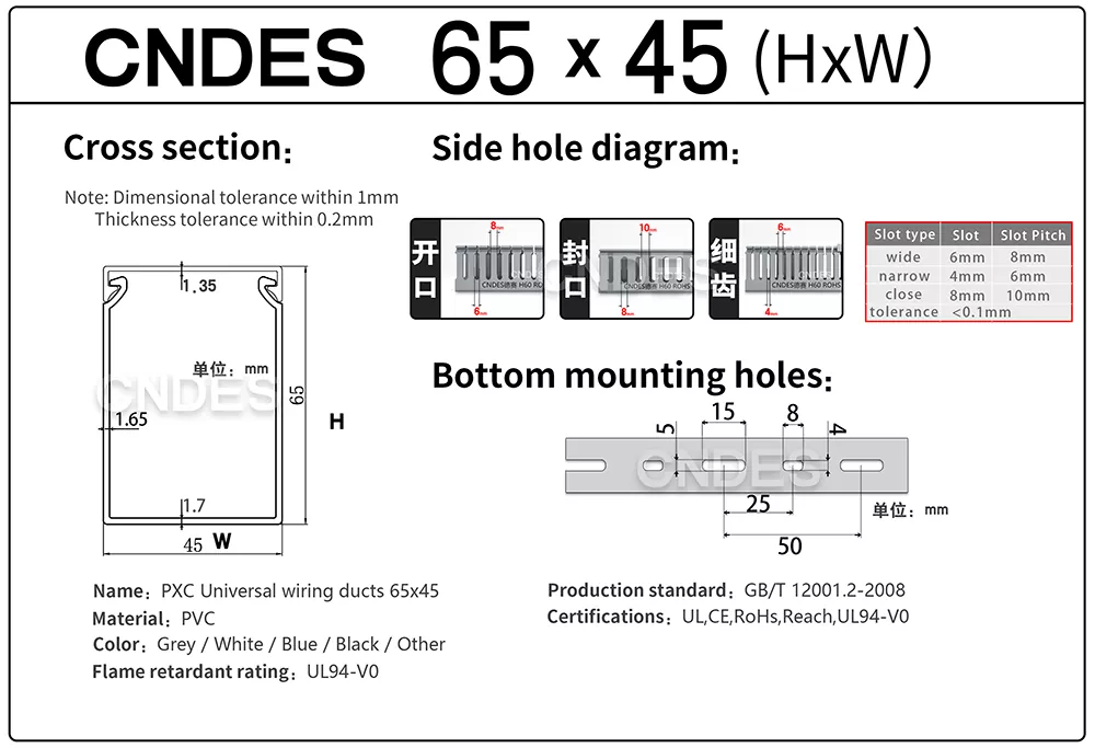 Jos hankit räätälöityjä 65 × 45 harmaita uritettuja PVC-johdotuskanavia luotettavalta valmistajalta ja toimittajalta Kiinasta, CNDES tarjoaa tasaista laatua, joustavaa räätälöintiä ja ammattitaitoista palvelua.