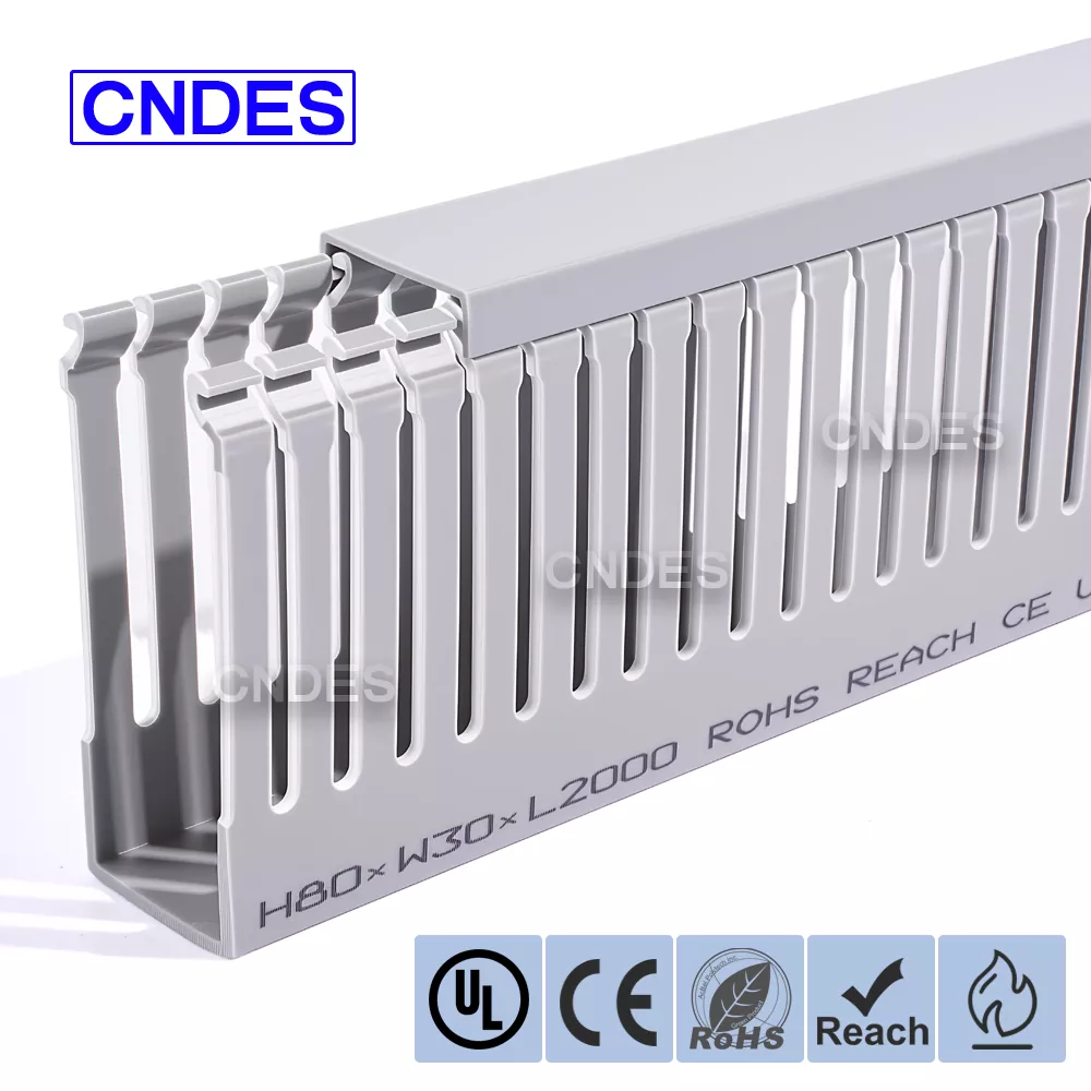 CNDES:n korkean suorituskyvyn 80 × 30 avoimet PVC-johdotuskanavat on suunniteltu tehokkaaseen, organisoituun ja joustavaan kaapelinhallintaan teollisuuden ohjauspaneeleissa, sähkökaapeissa ja automaatiokaapeissa. Nämä kompaktit kanavat ovat vain 30 mm korkeita ja 80 mm leveitä, joten ne tarjoavat korkeatiheyksisen kaapelinhallintaratkaisun ja helpottavat asennusta, huoltoa ja tulevia päivityksiä.