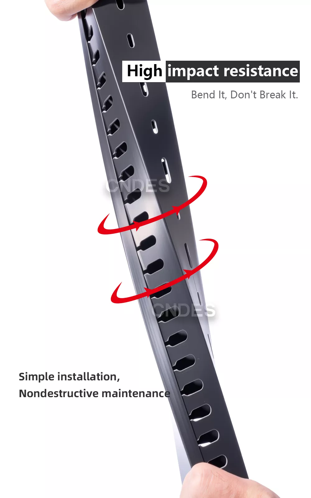 Kaavamme on ympäristöystävällinen ja tulenkestävä. Se varmistaa, että eri erien välillä ei ole värivaihteluita, ja säilyttää vahvat fysikaaliset ominaisuudet johdotuskanavissamme, jolloin ne kestävät toistuvia 180° taivutuksia rikkoutumatta.